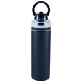The Elvin 900ml Recycled Stainless Steel Bottle exemplifies versatile and eco-conscious drinkware. It includes a convenient flip straw integrated into the lid for smooth one-handed sipping. Press the push-button to release the lid and switch to easy one-handed chugging. The flip handle raises for comfortable carrying and folds down when not needed. Crafted from recycled materials, this bottle combines style with sustainability, featuring a single-wall body made of 91% recycled stainless steel and a lid, handle, and straw tip made from recycled polypropylene (rPP).
