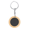 The Mirage Round Bamboo Keyring combines a smooth bamboo base with a black rubberized chrome mirror finish, offering a distinctive contrast. Its classic design prominently displays your company’s logo, making it an exceptional choice for corporate gifting or branded merchandise. Packaged in an elegant black paper box, it delivers both style and impactful dual-sided branding.