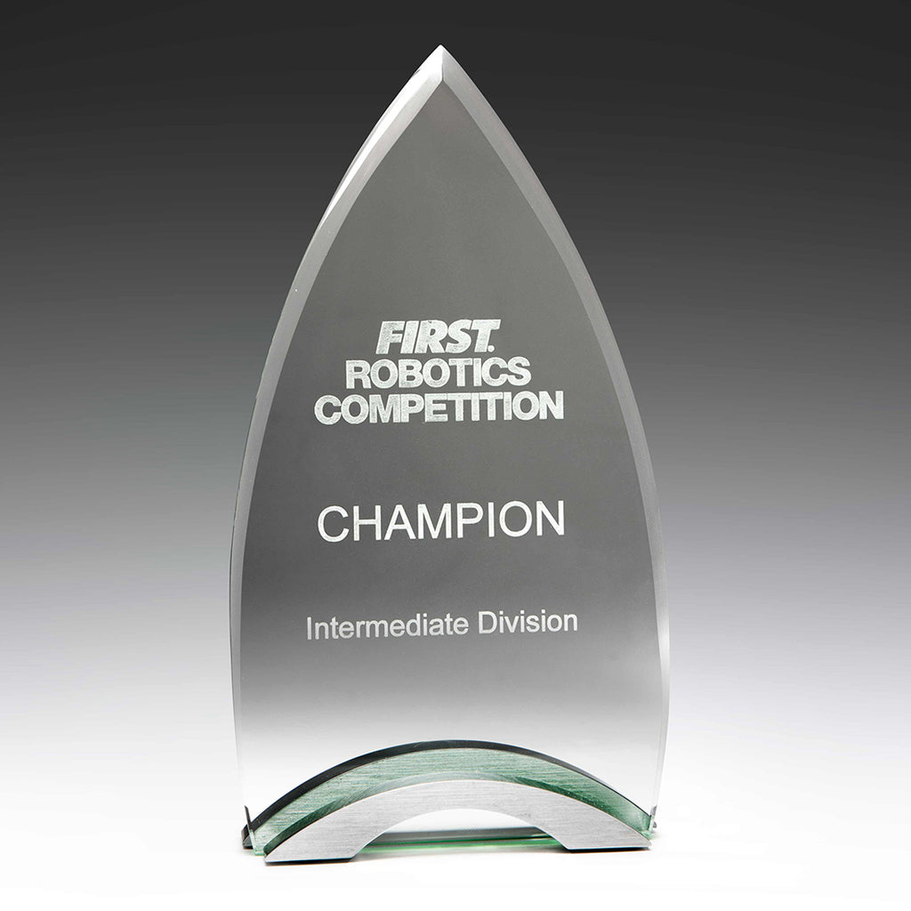 The Spear Award boasts a unique appearance with a standout glass arrow and a traditional chrome base. These cost-effective awards, available in two sizes, are perfect for acknowledging accomplishments in the business and corporate world.