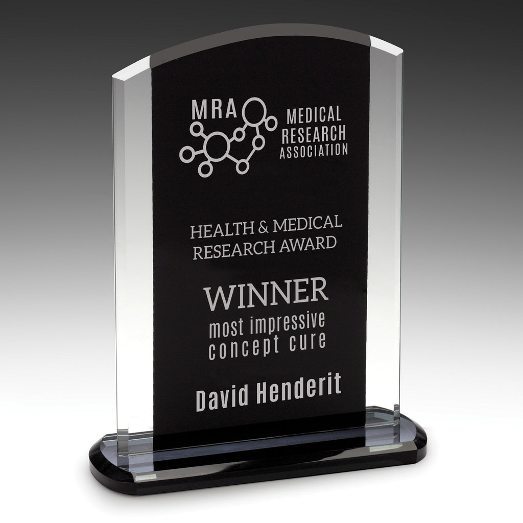 The Florence Glass Award offers an affordable option for those seeking a timeless arch design with sleek black panelling, perfect for precise engraving. This prestigious award comes in two sizes and is accompanied by a presentation gift box, making it an excellent choice for corporate events and competitions.
