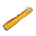 Coloured torch light with metal clip (9 x 1.6cm). Batteries not included