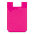 These custom screen printed soft touch silicone wallet adheres to the back of a phone or phone case with strong 3M adhesive that wont leave marks if it is removed.