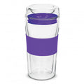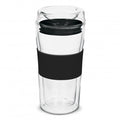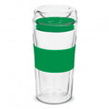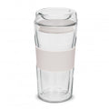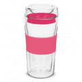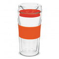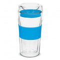 Trendy 350ml double wall borosilicate glass cup for hot or cold drinks. It will keep drinks hot or cold for longer and remains pleasant to hold with no condensation on the outside. Divino has a large silicone band and a push on glass lid with a secure silicone seal. The band and seal can be mixed and matched in any colour combination from the standard colours. Up to five different colour combinations are included in the price and more are available for an additional charge. Borosilicate is a lightweight glass which is exceptionally strong and shatter-resistant. It is a natural BPA-free choice for a clean, pure taste and it offers a safe alternative to single-use plastics.